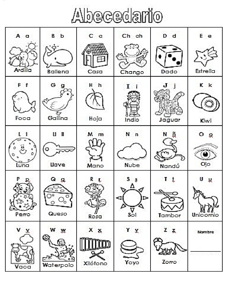 Abecedario Para Colorear El alfabeto se constituye de un conjunto ordenado de 27 letras y 5 dígrafos o combinaciones de dos letras.